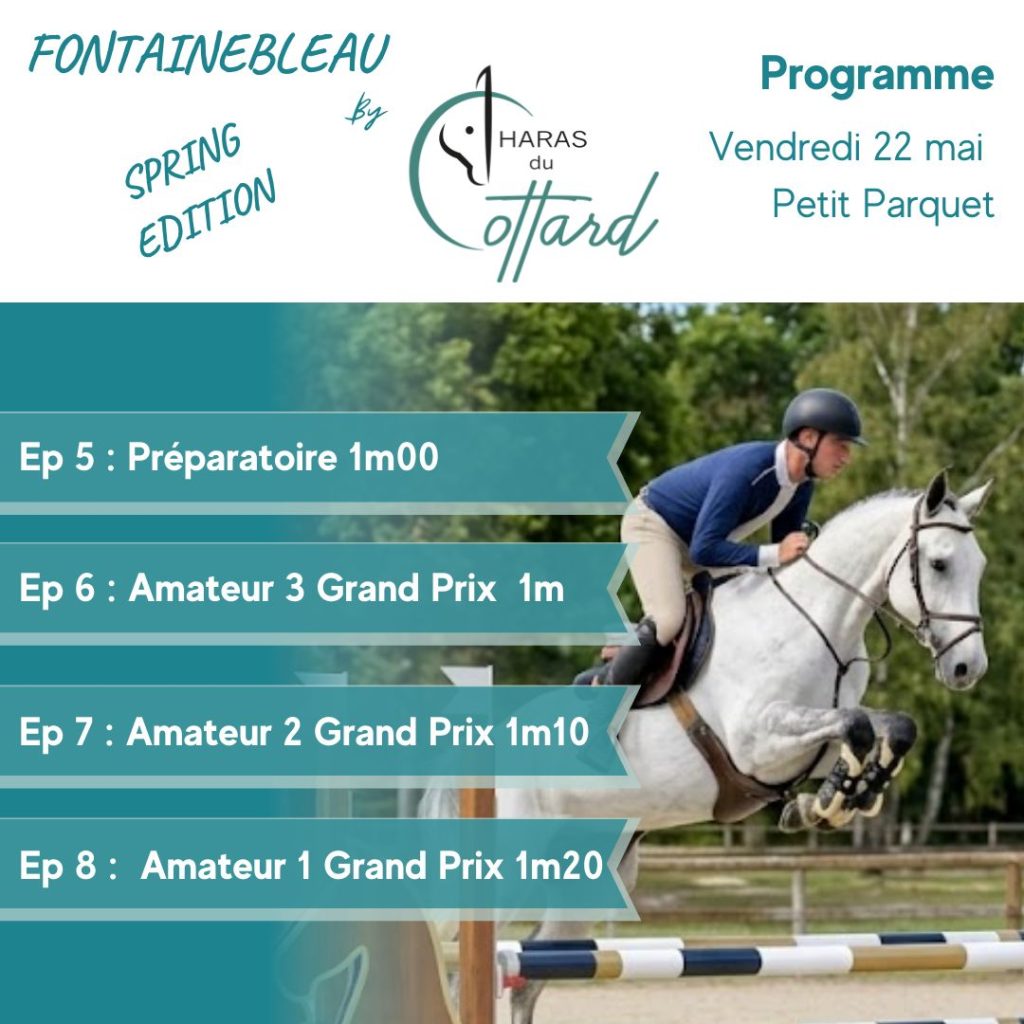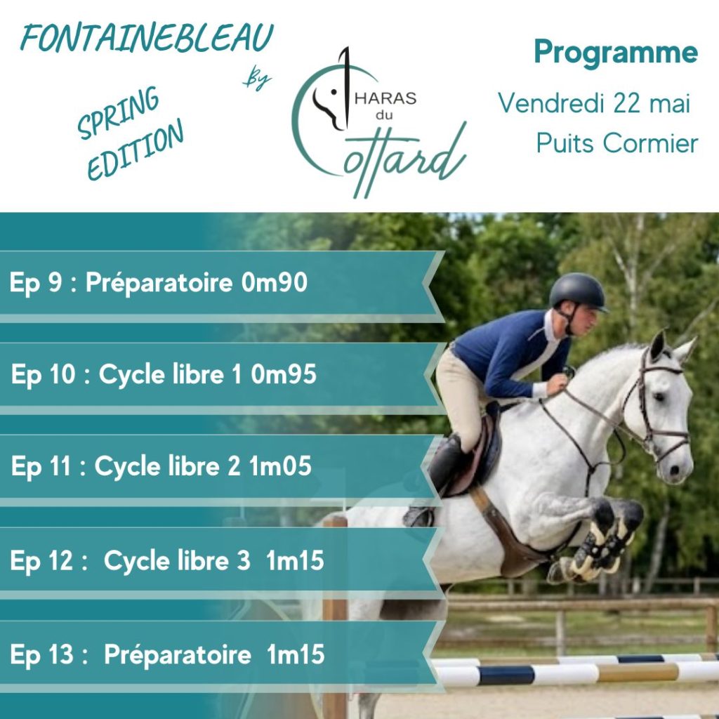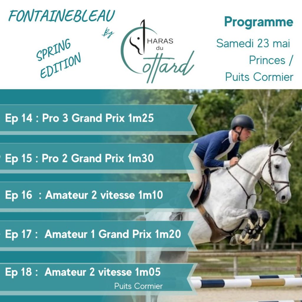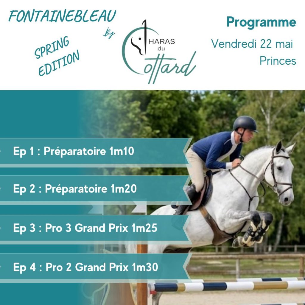 Fontainebleau by Cottard vous donne rendez-vous du 22 au 25 mai 2026 à Fontainebleau pour un week-end exceptionnel dédié au sport équestre. Au programme : la Spring Edition Amateur et Professionnel ainsi que la Tournée des As Poneys, pour des compétitions ouvertes à tous les passionnés.